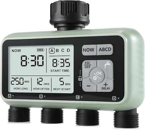 Ongebruikt, werkt, compleet, CROSOFMI Irrigatiecomputer, 4 uitgangen, tuin, watertimer, automatische irrigatie, lcd-scherm, eenvoudige bediening, kinderbeveiliging, vertraging bij zware regen, handmatige irrigatie, B0DN9FPT75