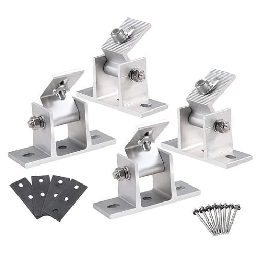 Ongeopend, in seal, CEIEVER Zonnepaneelhouder, 4 stuks, zonnemodule-houder, accessoires, verstelbare fotovoltaïsche houder, 15°-30° zonnepaneel, aluminiumlegeringhouder met draaibare hoekhouder (4 stuks), B0BHVYSV9Y