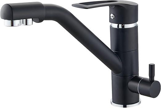 Ongeopend, ok, Plussen 2-weg drinkkraan roestvrij staal waterfilter kraan keukenkraan 2 in 1 chroom met 2 hendels (17-zwart), B0C6MN9FRK