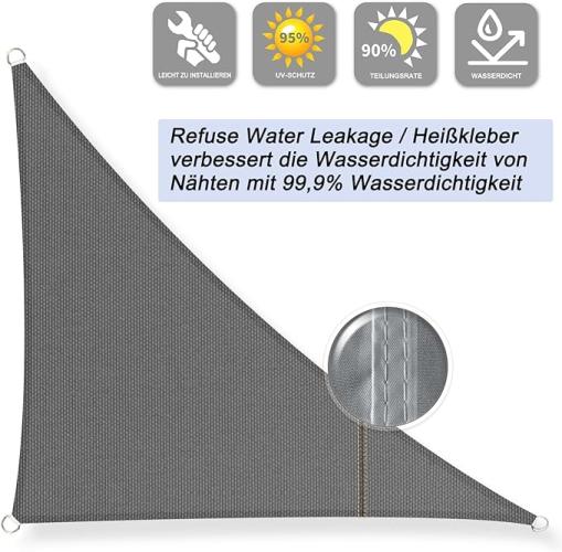 Ongeopend, Sunnylaxx 5 x 5 x 7 m, zonnezeil, driehoekig, waterdichte zonwering, zonnezeil, kleur antraciet, 95% uv-bescherming, B09P4QYPCC