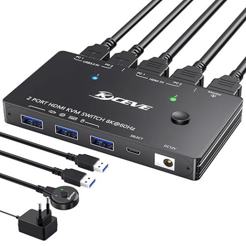 Minieme gebruikssporen, ok, USB 3.0 KVM Switch HDMI 2-poort, 8K@60Hz 4K@120Hz HDCP 2.3 HDMI 2.1 KVM-switch 2 pc 1 monitor delen 4 USB 3.0-apparaten Toetsenbordmuis met bedrade afstandsbediening en 2 USB-kabels,B0C2P6F4GX