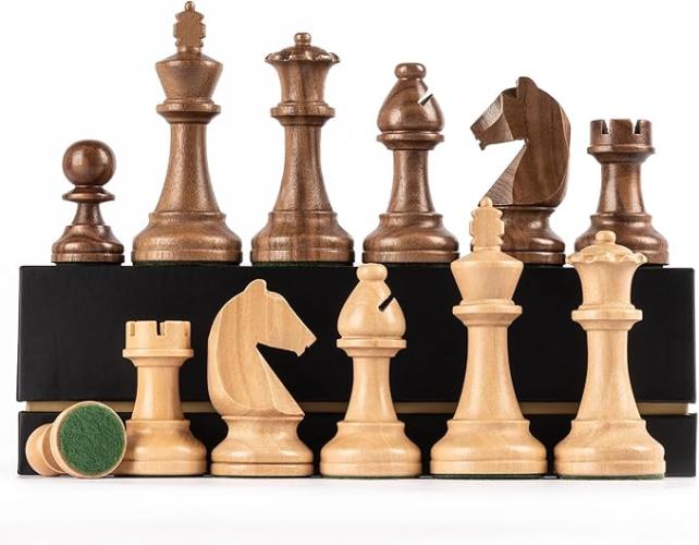 Ongebruikt, volledig, ok, A&A Premium Triple Gewogen Staunton Houten Schaakstukken w/2 Extra Queen - King Hoogte 9,5 cm/2 Opbergzakken - Natuurlijk Walnoothout, B0F294DDVQ