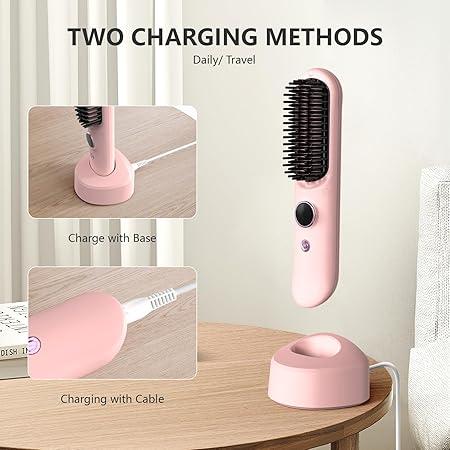 Ongeopend in seal, Accu Stijltang -borstel, draadloos, mini-stijlborstel met 8400 mAh batterij, negatieve ionen, 120-200 °C, lcd-scherm, draagbare draadloze stijlborstel, kam, Roze, , B0CSM2L9NL