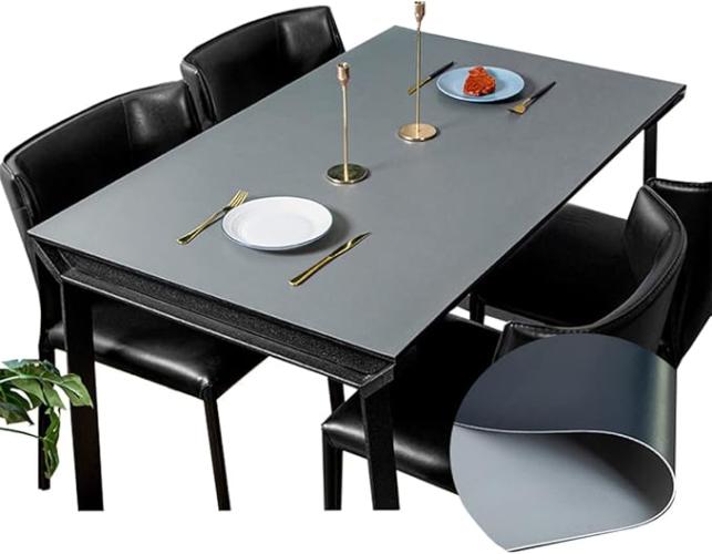 Ongebruikt,ok, Tafelkleed van leer, water- en oliebestendig, gemakkelijk schoon te maken, dubbelzijdig, verkrijgbaar in zwart + donkergrijs, afmetingen 90 x 160 cm,B0925ZX18Z