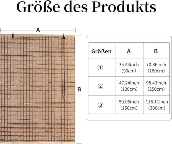 Ongeopend, Cy.curtain bright Bamboe rolgordijnen 90 x 180cm bamboe rolgordijn voor balkon voor deuren en ramen , halfdoorschijnend , donkerbruin B0CD3XQ6GF