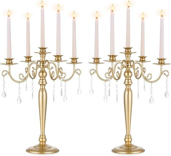 Ongebruikt, volledig, ok, Sziqiqi Gouden Kandelaar voor Bruiloft: 5 Arm Kandelaar Kaarshouders voor Taper Kaarsen - Set van 2 Metalen Kandelaar Houder voor Kerstdiner Receptie Verlovingsdecoratie,B0DRVPMLSR