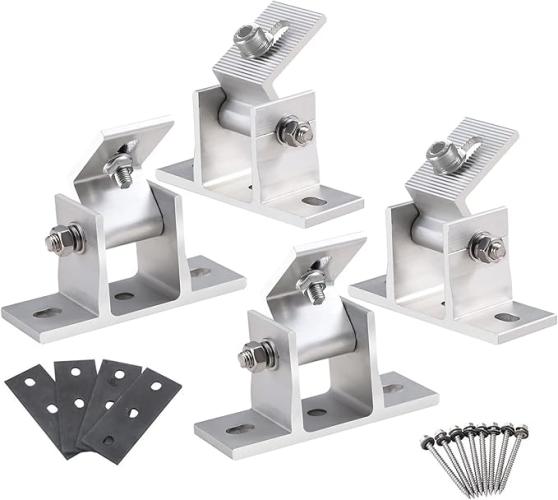 Ongeopend, in seal, 3X CEIEVER Zonnepaneelhouder, 4 stuks, zonnemodule-houder, accessoires, verstelbare fotovoltaïsche houder, 15°-30° zonnepaneel, aluminiumlegeringhouder met draaibare hoekhouder (4 stuks), B0BHVYSV9Y