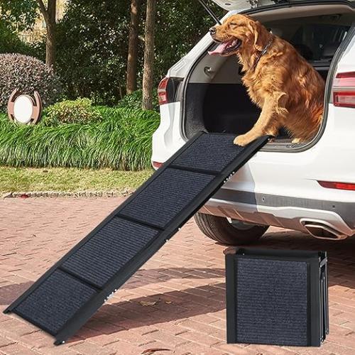 Ongebruikt, ok, SMONTER Hondenramp voor grote honden, opvouwbare draagbare huisdierentreden 180 cm lang, 44 cm extra breed, aluminium hondentrap met vilt antislip oppervlak, lichtgewicht en duurzaam, B0DFCGBDP4