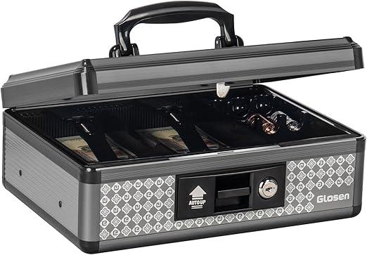 Ongeopend, ok, Glosen Geldkist met slot, spaarpot met sleutelslot en verwijderbare muntenlade 22,5 x 13,5 x 30 cm (zwart, medium), B0CWRHDBXW