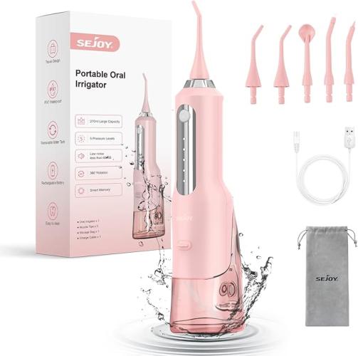 Ongeopend, ok, Sejoy Draadloze waterflosser, water tandflosser waterflossers voor tanden draagbare monddouche oplaadbaar voor thuis op reis, 270 ml IPX7 waterdicht 5 reinigingsmodi en 5 straalpunten, roze, B0BGH1ZJJC