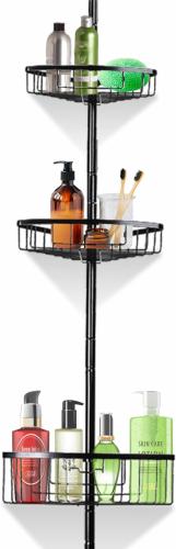 Ongeopend, ok, smartpeas Telescopisch doucherek - zwart, roest- en krasbestendig, gepoedercoat roestvrij staal, elegante afwerking, eenvoudig te monteren telescopische doucheplank, B0CD89182R