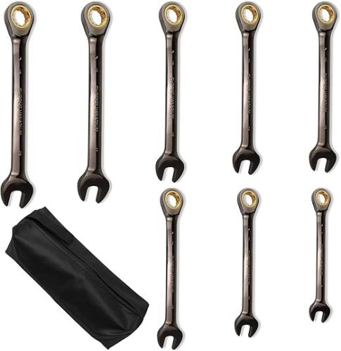 Ongeopend, 8 stuks ratelsleutelset, 8-18 mm steeksleutelset met opbergtas, 72 tanden en 5° zwenkbereik, chroom-vanadium-staal, ringsteeksleutel, B0DSVLLRGM