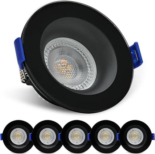 Ongeopend, ok, KYOTECH Set van 6 inbouw LED-spots 230 V Badkamer IP65 5W Ultraplatte plafondspots 3000 K, Diameter 68 mm 500 lm voor Badkamer, Woonkamer, Keuken, Gang, Rond Zwart, B0CF88WMN4