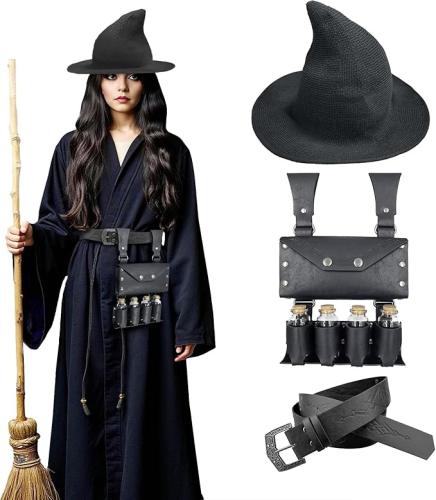 Ongeopend, in seal, ok, HiiFeuer Middeleeuwse alchemieset van kunstleer, heksenpet met punt voor vrouwen, fantasie tovenaarsriem met toverdrankbuidel,B0DHBY72PC