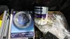 Vv. worteldoek, partij spuitbussen, verf, wielen, ...