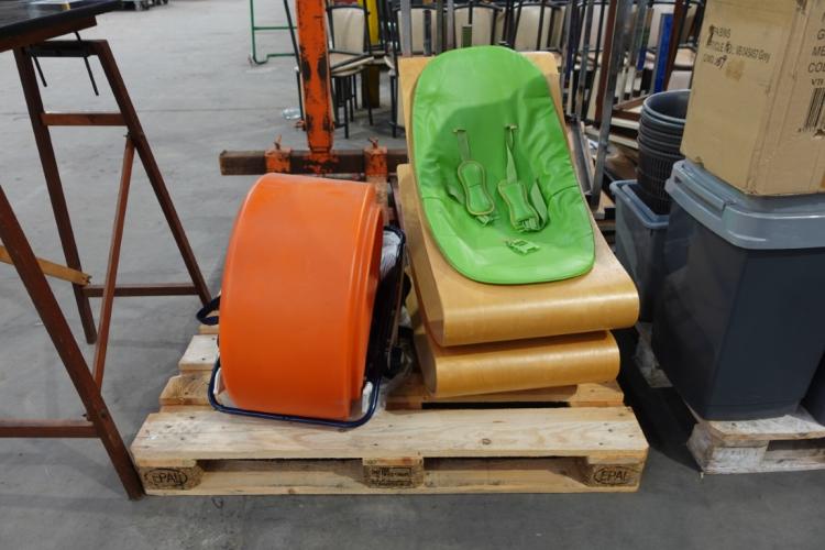 vz : kinderstoel, staantafel,kunststofbakken, vuilbak...