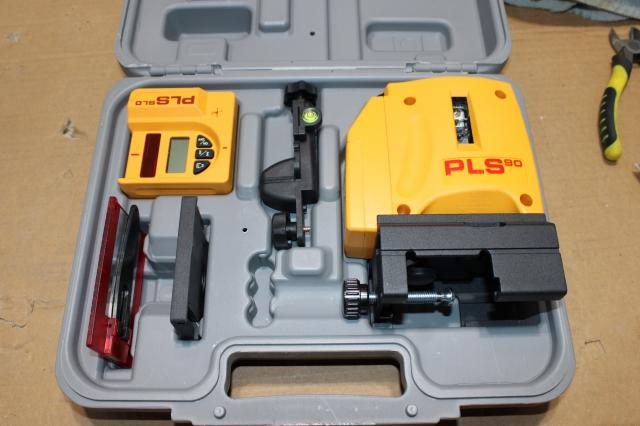 Ongebruikt, ok, batterijen en 1 richtplaat ontbreken, Pacific Laser Systems PLS90 Self Levelling Laser in Hard Case (inclusief ontvanger en buitendoelschijf)