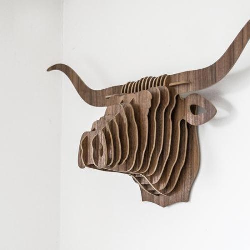 BUFFEL - Muurdecoratie - MDF - 42 x 40 cm. - Kleur WIT