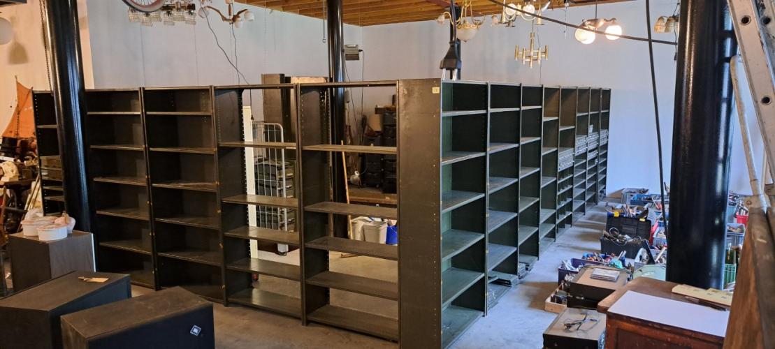 Inclusief 67 bakjes met onderverdelingen en 205 onstaande verdelingsplaatjes, één rek is 199x92x32 BTW op marge