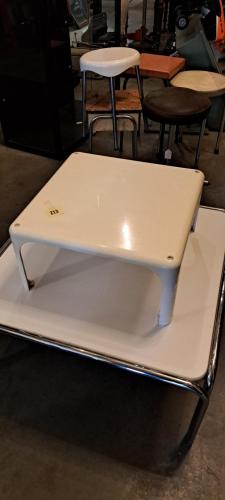 2 tafeltjes chroom 74x74x35 en artemide 45x45x23