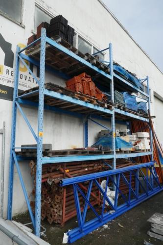 Stalen magazijnrek blauwe kleur, bestaande uit 3 staanders ( L500 cm ) - 16 liggers ( L270 cm )