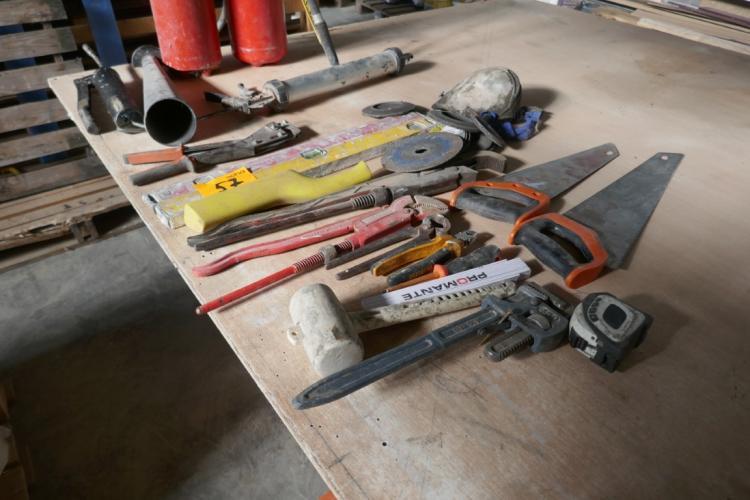 Divers gereedschap : handzagen - tangen - spuitkit - vetpomp - snelblussers - enz…