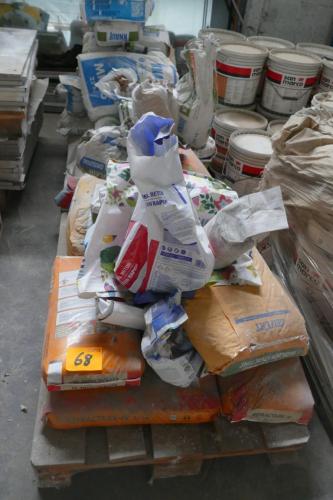 2 palletten met diverse gebruikt en niet-gebruikte zakken mortel en dergelijken : mortel - pleister - enz….