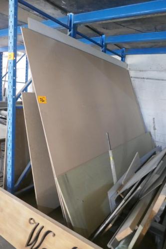 Metalen platenkar op zwenkwielen met als inhoud diverse houten platen
