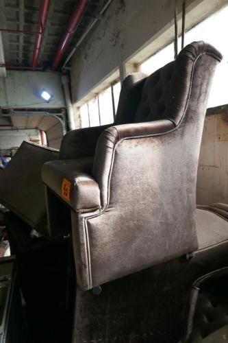 Allerhande vintage meubelen : 5 verrijdbare stoffen zetels - stoffen 3zit zetel - vintage houten salontafel - 2 nachtkastjes