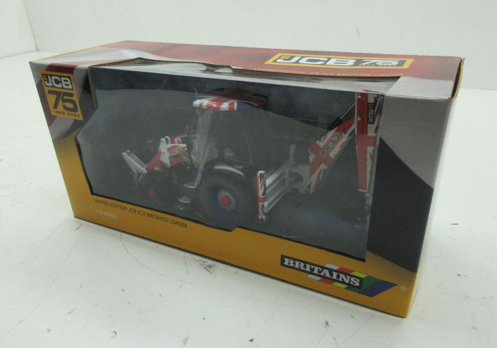 Miniatuur graaf-laadmachine JCB 3CX Limited edition Union Jack JBC 75years