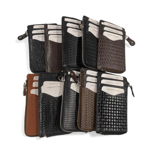 10 x Lederen kaarthouder + sleutelring - verschillende designs leder - 12,5 x 7 cm.