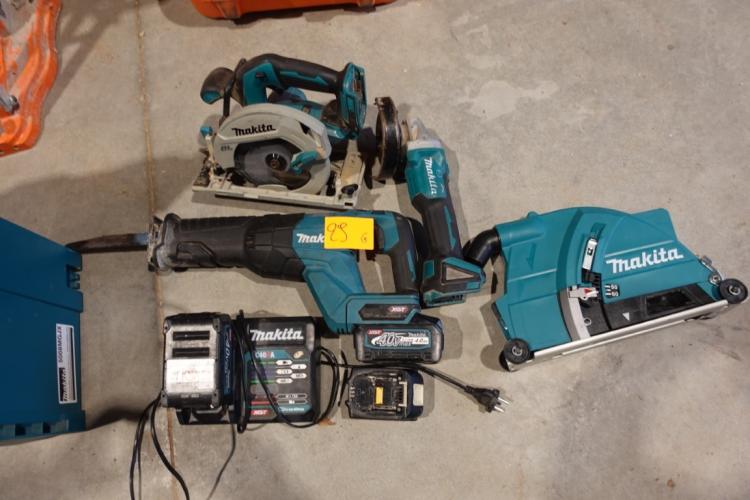oa: reciperozaag, stofkap, slijpschijfmachine, cirkelzaagmachine, samen met 3x accu en lader