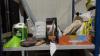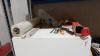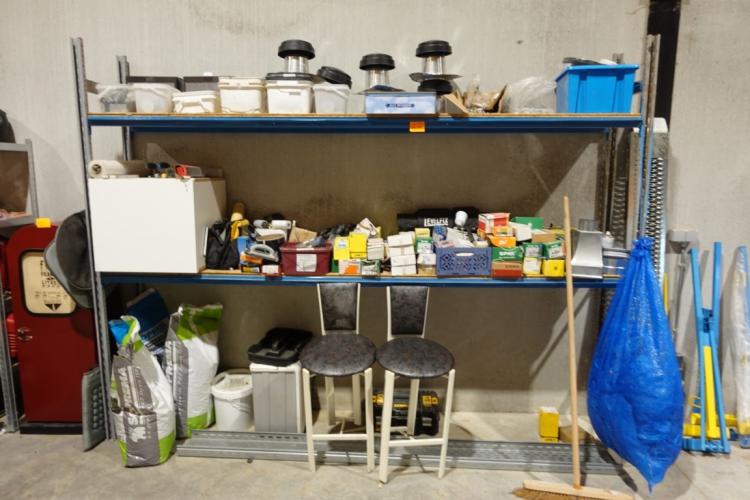 lengte rekken: 3m & 1m20, oa: ijzerwaren, dakdoorvoeren, frigobox, divers werkmateriaal,...