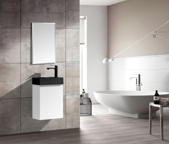 2 x 40cm Toiletmeubel COMO40-03B - Kleur: mat wit - Met mat zwart wastafel - Afm. B40xH60xD22CM - Deur voorzien van Softclose systeem - Spiegel 40x70cm- kraan, krepin en sifon niet inbegrepen -