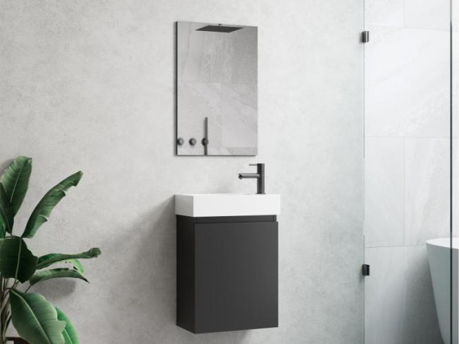 2 x 40cm Toiletmeubel COMO40 - 04 - Kleur: mat zwart- Met wastafel - Afm. B40xH60xD22CM - Deur voorzien van Softclose systeem - Spiegel 40x70cm- kraan, krepin en sifon niet inbegrepen