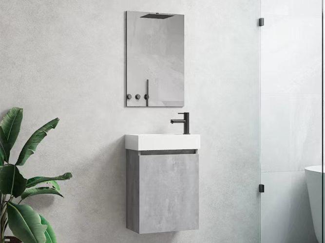 1 x 40cm Toiletmeubel COMO40 - 05 - Melamine - Kleur: Beton grijs - Met wastafel - Afm. B40xH60xD22CM - Deur voorzien van Softclose systeem - Spiegel 40x70cm- kraan, krepin en sifon niet inbegrepen