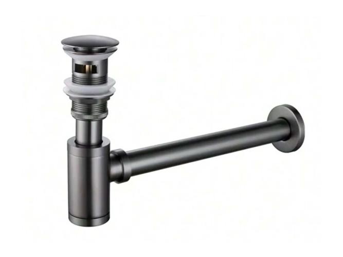2 x Design sifon met afvoerplug - POP-UP crepine - Kleur: Gun Gray - 1¼ -