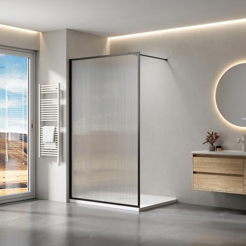 1 x 120x200 BV Inloopdouche met mat zwart frame en geribbeld glas