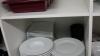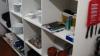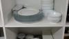2x rek + inhoud oa: borden , serveerborden , snijplanken ,... vuilbakken , inhoud kast met borden , glazen , enz ..