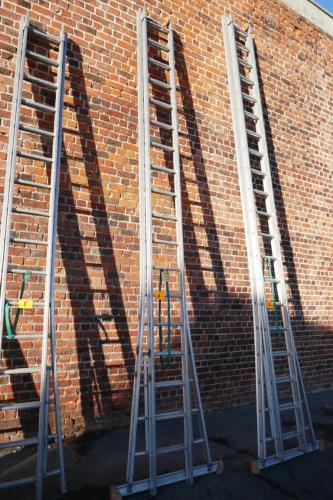 1 Alu dubbele opsteekladder, 2 x 18 sporten met wijd uitlopende basis en stabilisatiebalk