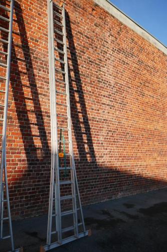1 Alu dubbele opsteekladder, 2 x 20 sporten met wijd uitlopende basis en stabilisatiebalk