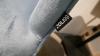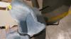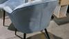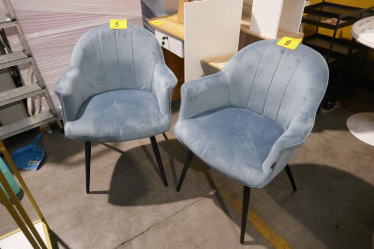 2 metalen eetkamerstoelen in blauw stoffen bekleding