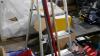 Diverse items : 3 vuilbakken met voetbediening - verwarmingselement - trapladder - poetsmateriaal - baloncylinder - schildermateriaal - bidons gedemineraliseerd water
