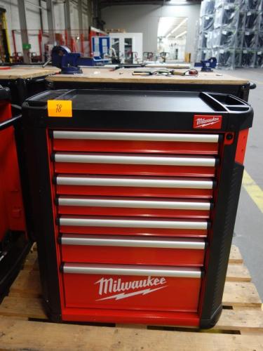 Gevuld met divers handgereedschap, vv. 7 lades, (wielen nog te monteren, sleutel ontbreekt)