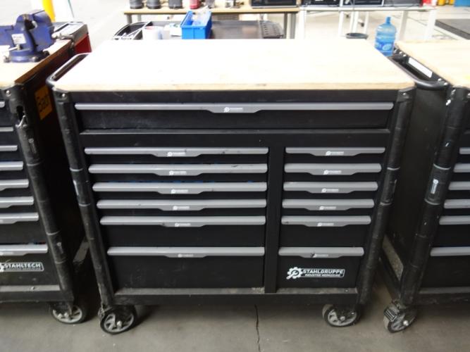 Gevuld met divers handgereedschap, vv. 13 lades, (slot verwijderd)