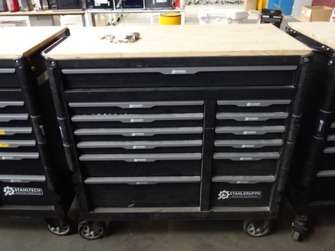 Gevuld met divers handgereedschap, vv. 13 lades, (slot verwijderd)