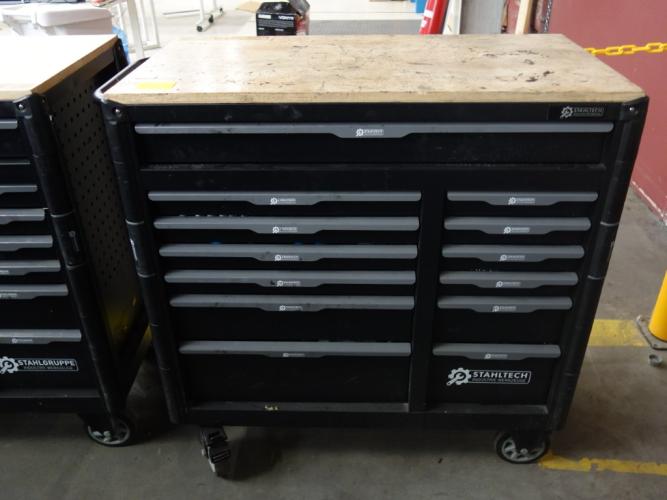 Gevuld met divers handgereedschap, vv. 13 lades, (slot verwijderd)