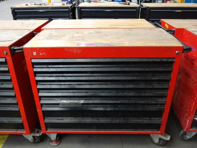 Gevuld met divers handgereedschap, vv. 10 lades, (slot verwijderd)