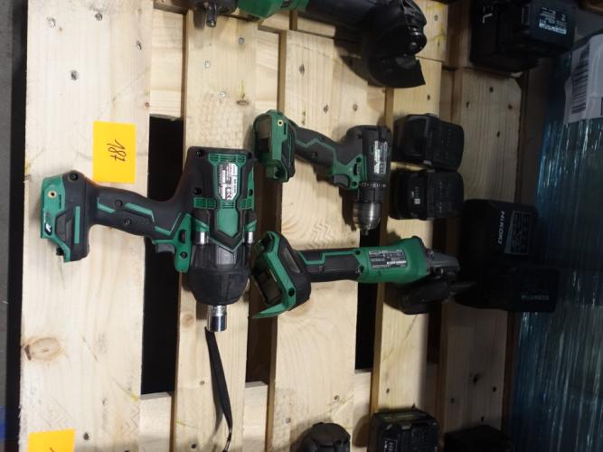 haakse slijper, slagmoersleutel en boormachine, vv 3x accu en lader
