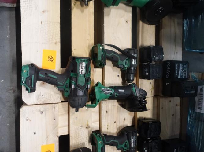 haakse slijper, slagmoersleutel en boormachine, vv 3x accu en lader